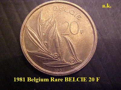 BELGIUM 1980 20 FRANCS BELGIE BRONZE COIN KM160 Europe - Dutch Legend. The reverse side of the coin includes the Belgian coat of arms. Ad Collectible Coins for Sale on eBay.